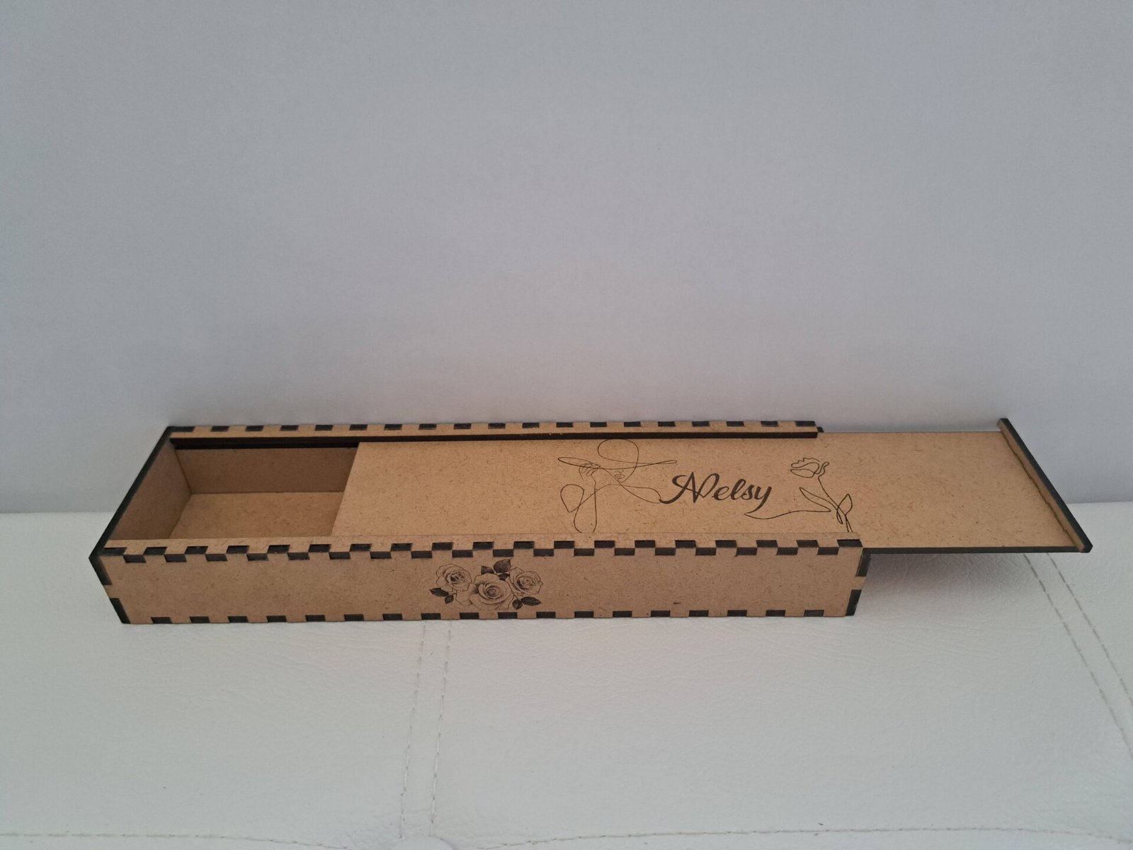 Transformez la façon dont vous rangez vos stylos avec notre boîte à stylos personnalisable en bois. Conçue avec soin, cette boîte allie esthétique naturelle et praticité grâce à son design en bois et son couvercle coulissant. Que ce soit pour vos stylos préférés, vos instruments de dessin ou même pour offrir un cadeau spécial, cette boîte incarne parfaitement l’équilibre entre style et utilité.