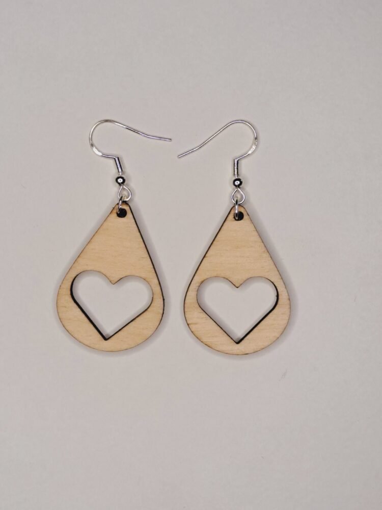Ces boucles d’oreilles pendantes en bois mettent en valeur votre style. Leur forme de goutte élégante capte le regard car nous avons découpé un cœur délicat en leur centre. Elles sont très légères et elles ajoutent une touche unique à votre look quotidien. Votre tenue sera parfaitement complétée avec ces boucles d’oreilles qui peuvent être portées facilement.